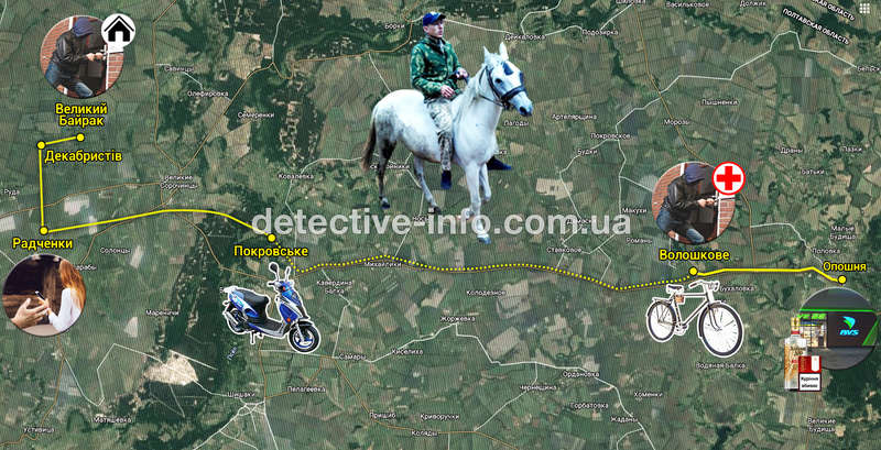 Зокрема, саме терориста-втікача співрозмовники Dетектив-Info вважають причетним до викрадення ввечері 29 липня скутера з подвір’я в селі Покровське Шишацького району. Подейкують, що в цьому випадку доля не посміхнулася Скрипнику - в транспортному засобу було небагато палива, тож "залізного коня" він невдовзі кинув. Але, ймовірно, й цього вистачило зловмиснику, аби дістатися Зінківського району. Тут "Рембо" викрав велосипед та "виставив" ФАП у Волошковому, звідки поцупив медичну сумку з ліками. Після чого в ніч на 30 липня потрапив до об’єктиву відеокамери автозаправки в Опішні, куди з маскою на обличчі він завітав купувати цигарки.