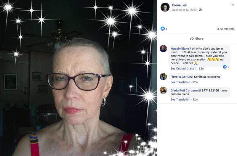 Любопытно, что через месяц после убийства, 12 декабря, Лери обновила свои фото в "Фейсбуке". На обложку поставила море с кораблем с итальянским флагом и с яхтами – такое же фото от 7 октября 2019 года стоит на страничке убитого ею итальянца. При этом она не удалила их совместный снимок.