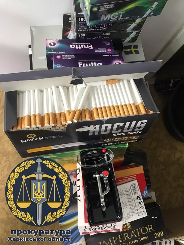 "В ходе обысков, проведенных 4 августа в торговых павильонах и складах, расположенных в Изюме, изъято около 50 тысяч пачек сигарет, в том числе изготовленных на оккупированной территории ("ДНР"), а также сигареты россыпью, табак, устройства для изготовления поштучно сигарет в домашних условиях, табак для кальянов", - говорится в сообщении прокуратуры Харьковской области.
