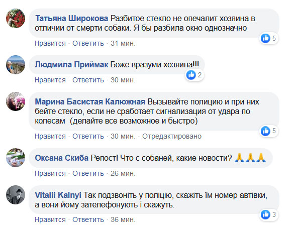 Пользователи сети предложили автору поста вызывать патрульных и в их присутствии бить стекло, чтобы спасти животное.