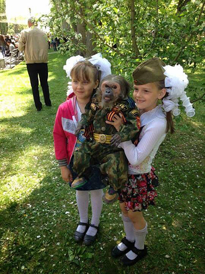А ещё на том же показе мод можно было встретить представителей вида Homo Dedyvoevalius, увешанных бутафорскими орденами и медалями.