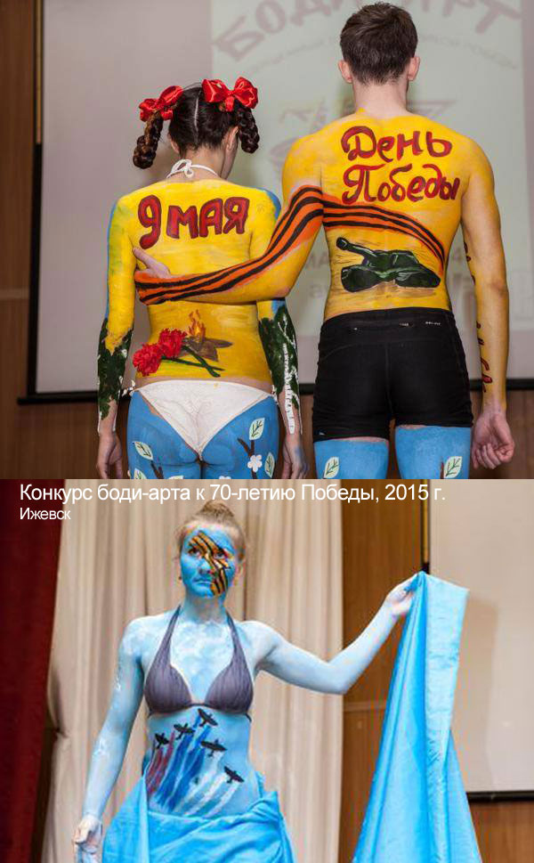 Необычным образом отметился Ижевск: там ко Дню Победы приурочили конкурс боди-арта.