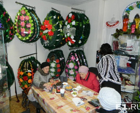 В свете этого уже не выглядит таким странным, что екатеринбургское похоронное бюро пригласило ветеранов на чаепитие в окружении венков и гробов.