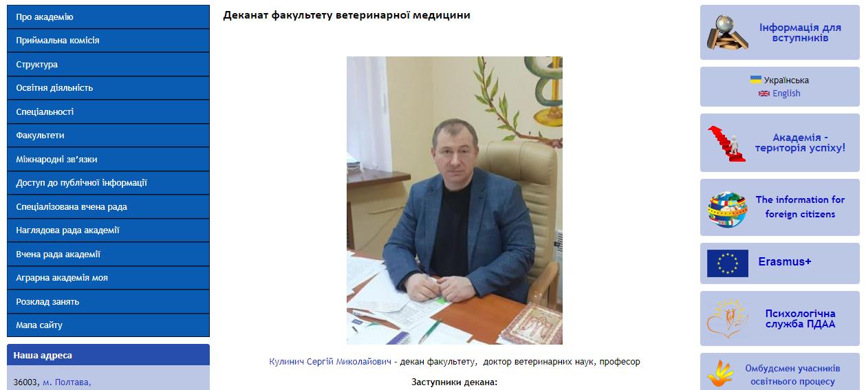 Що змінилось за цей час? А нічого, окрім фото фігуранта кримінальних справ. На сайті аграрної академії можна зайти в розділ ветфакультету і побачити, що і декан, і його заступник продовжують працювати.