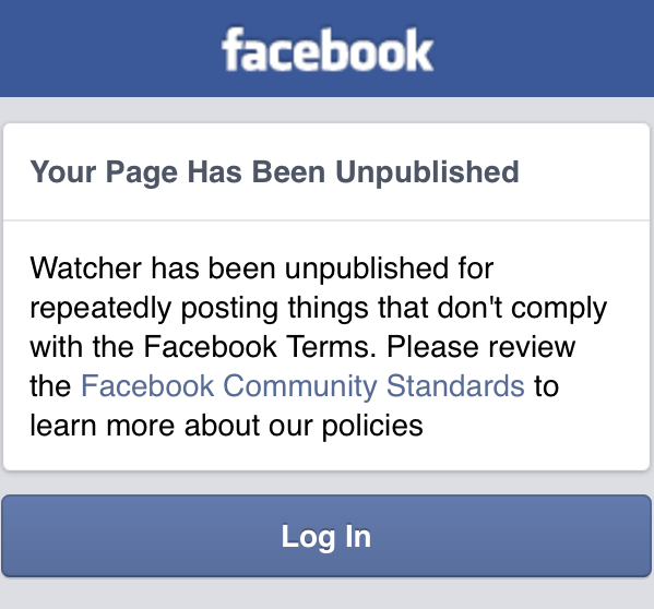 Український поет Андрій Бондар, голова Луганської ОДА Геннадій Москаль, народний депутат Борис Філатов, одна з найпопулярніших гумористичних спільнот «Баба і Кіт» і багато-багато інших людей та видань було заблоковано у Facebook протягом останніх тижнів. А виданняWatcher.com.ua заблокували назавжди (але наш досвід показує, що з такими випадками можна боротися, тому в ближчі дні ми відновимо роботу сторінки Watcher у Facebook).