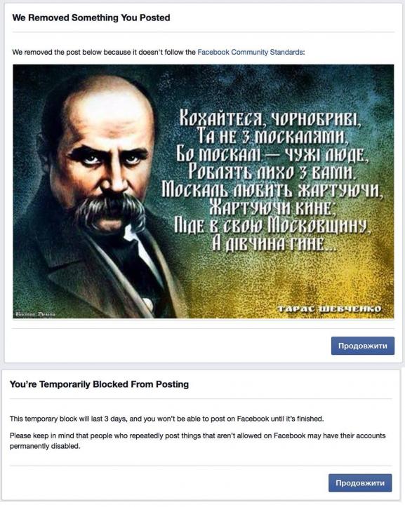 Цей процес набув настільки великих масштабів, що мало не щодня ми чуємо нові повідомлення про блокування екаунтів впливових українських користувачів Facebook.