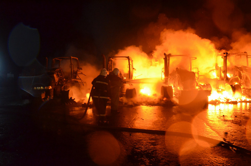 Прибывшим на место ЧП пожарным удалось спасти от повреждения пламенем только три трактора. Большая часть автопарка сгорела.