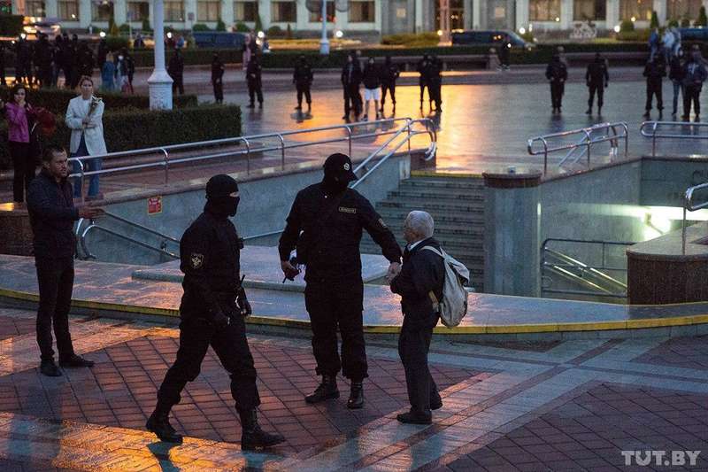 В Минске ОМОН отобрал у 73-летней Нины Багинской флаг, с которым она пришла на акцию протеста в центр города 26 августа.