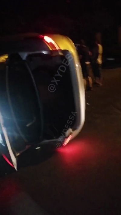 Ночью 27 августа в Одессе пьяный водитель на Lexus влетел в два припаркованных автомобиля и перевернулся.