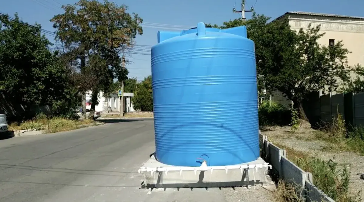 «Вот такие вот резервуары будут расположены в различных районах города Симферополя, для того чтобы обеспечить в критический момент горожан водой, когда будут ее отключать и воды не будет по несколько часов, а возможно и несколько суток», — рассказывает Баккал.