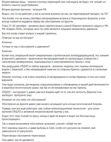 Мы разрушаем ОРДЛО в любом варианте — военном, мирном, они лишены потенциала рядом с Украиной, и без непрерывной накачки со стороны Кремля, сдуваются в считанные недели.