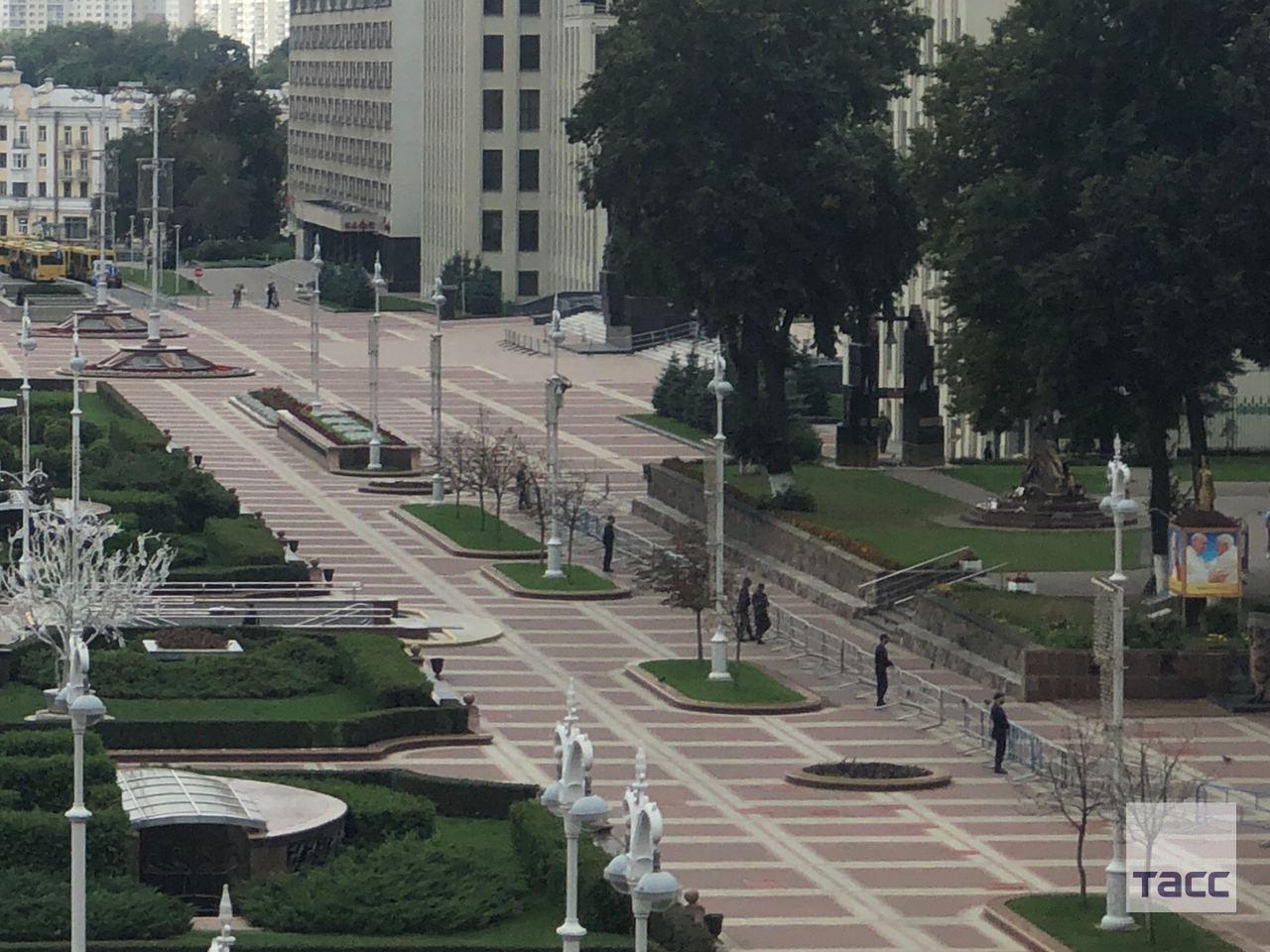 Площадь Независимости в Минске огородили по периметру турникетами, там дежурят наряды силовиков. Пешеходы возмущены тем, что не могут воспользоваться подземными переходами и пересечь площадь.