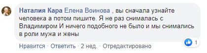 В свою очередь Владимир Владимиров намекнул, что сцена, о которой идет речь, предполагала близкий контакт и выходящее за рамки обычного поведение. Кроме того, актер назвал свою обвинительницу неадекватной.