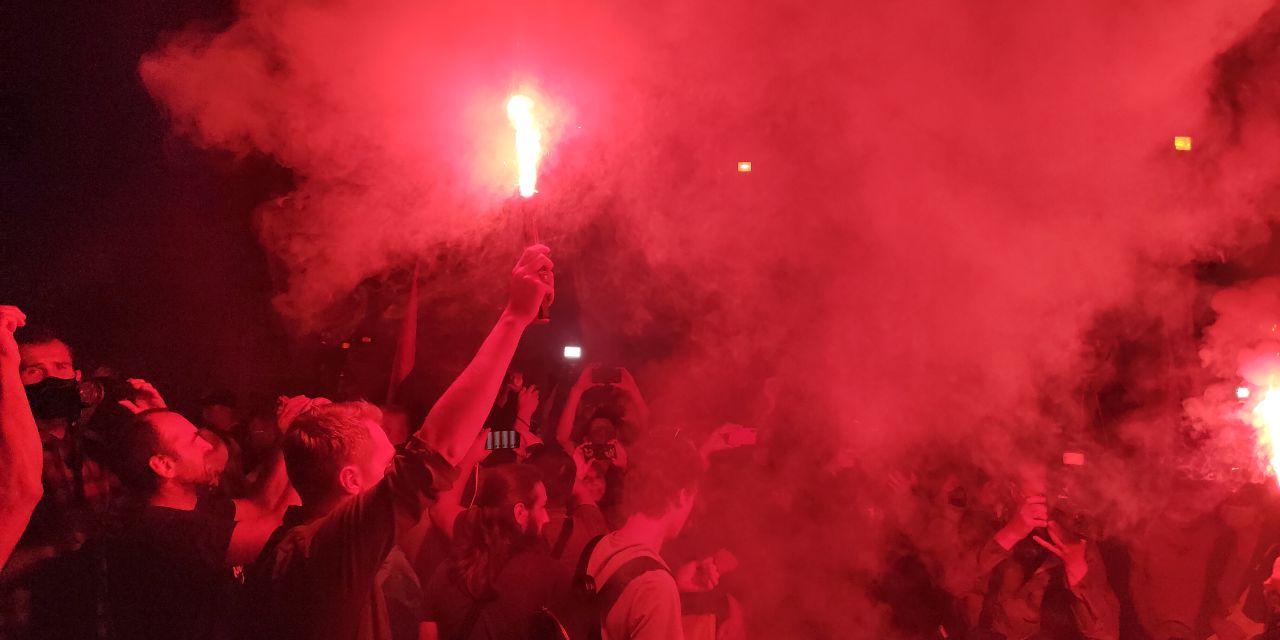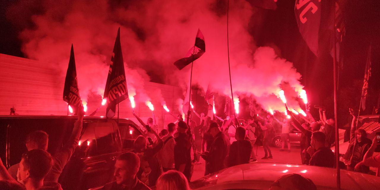 Її учасники запалили піротехніку та розписали паркан.