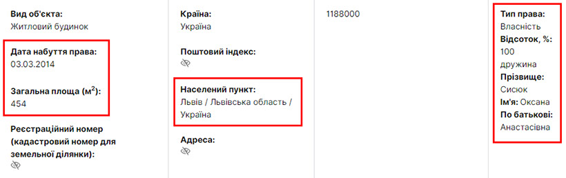 Вартість будинку на дату реєстрації складала 1,18 мільйона гривень, або 122 тисячі доларів за тодішнім курсом. Того ж року Оксана Анастасівна взагалі не мала зарплати, а лише відсотки за вкладами.