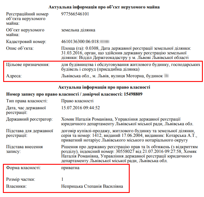 У Сисюк Оксани є ділянка безпосередньо у Львові площею 0,09 га. При цьому власник у реєстрі відсутній взагалі. З ухвали ж сесії Львівської міськради ми маємо підтвердження про власника.