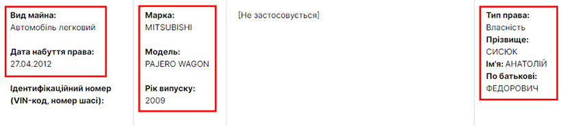 Якщо вірити задекларованій Анатолієм Сисюком інформації, він має у власності лише один автомобіль – позашляховик Mitsubishi Pajero Wagon, зареєстрований у 2009 році. Саме про такий автомобіль йшлося в протоколі про здійснення ДТП у стані алкогольного сп’яніння. За нашими підрахунками, подібний транспортний засіб того ж року міг обійтися йому щонайменше в 30 тисяч доларів. Очевидно, це суттєва сума як для державного службовця.