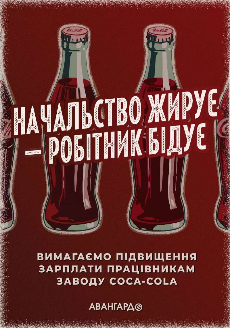 Біля заводу “Кока-Кола” в смт Велика Димерка на Київщині з’явились плакати з вимогою підвищити зарплату його працівникам. Такі ж плакати також були поширені в найближчих селах, де проживають робітники заводу, а також біля станції метро “Чернігівська” у Києві.