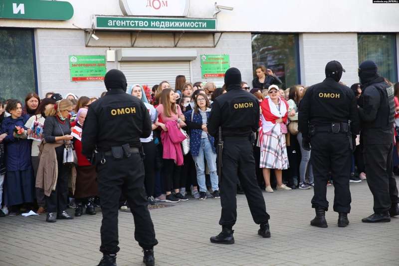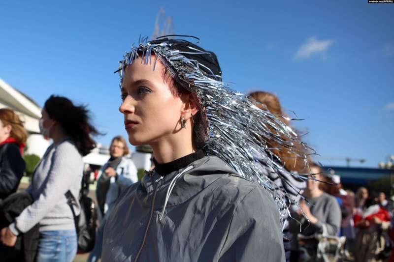 Участницы демонстрации в яркой одежде, в блестках и с транспарантами скандировали, в частности, «Спасибо журналистам». Перед парком Дружбы народов также появилась колонна байкеров с бело-красно-белыми флагами, некоторых из них женщины «отбивали» у силовиков.