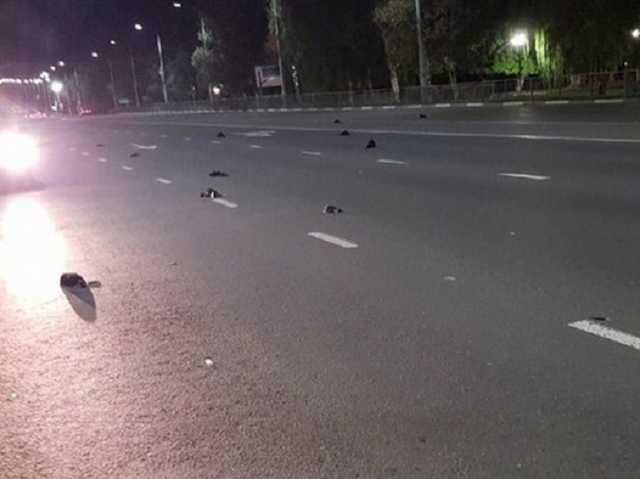 В соцсетях появилось фото, сделанное ночью 19 сентября, на котором проезжая часть улицы 30-летия Победы в Балаково усыпана птицами.