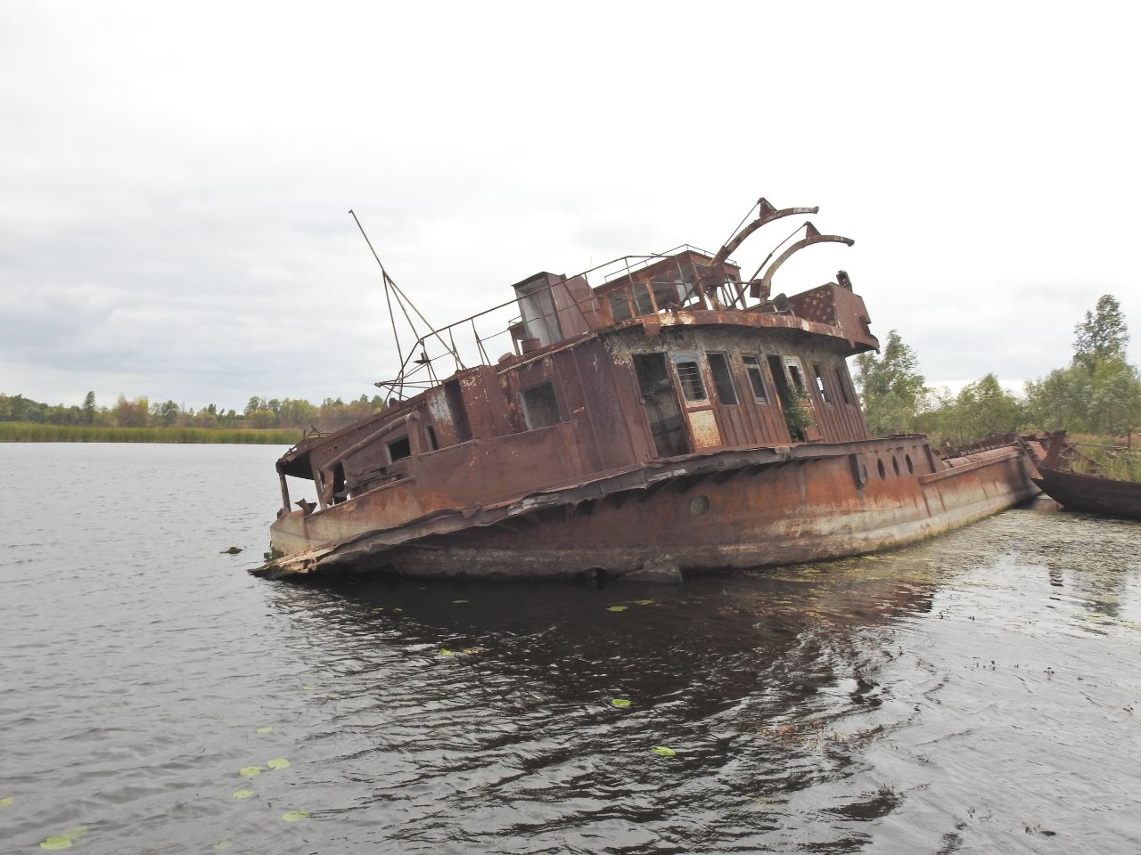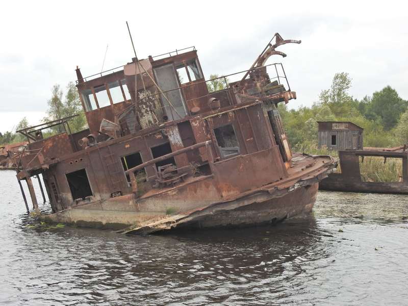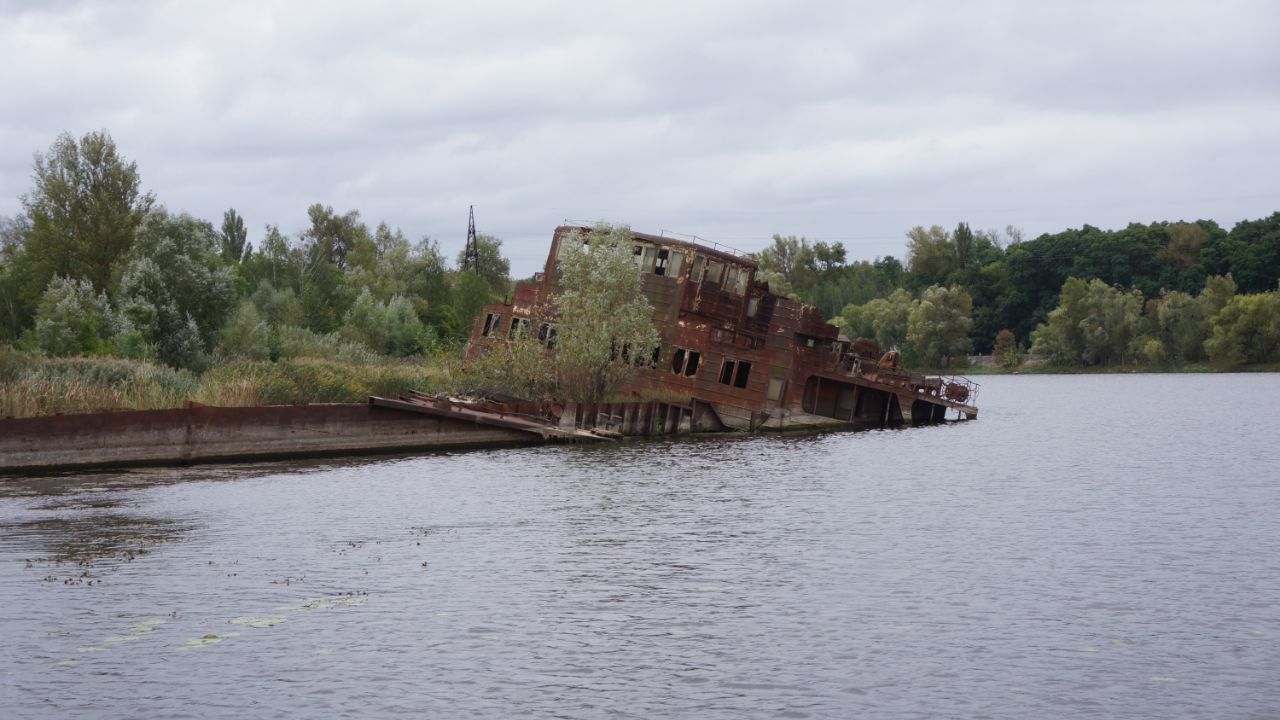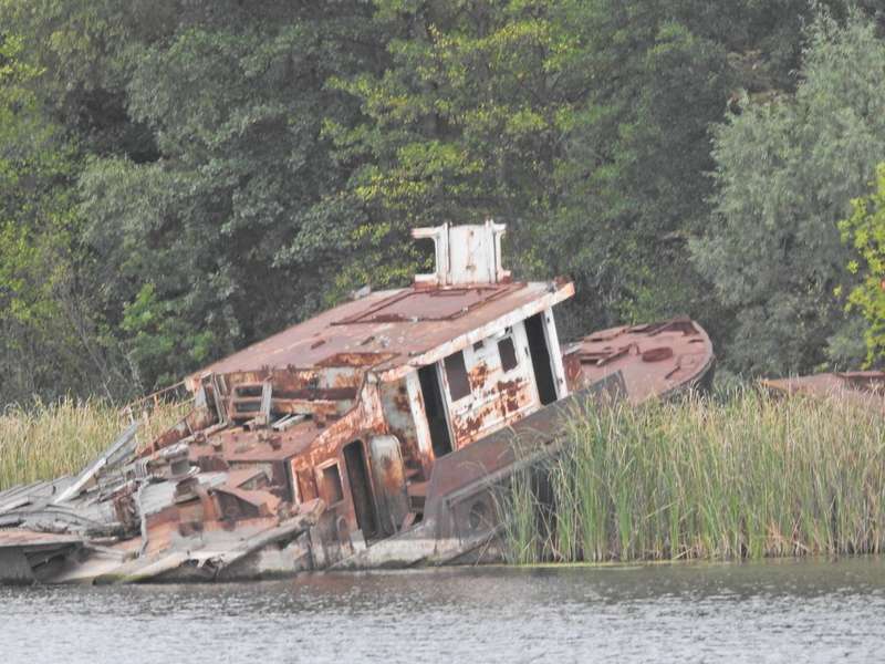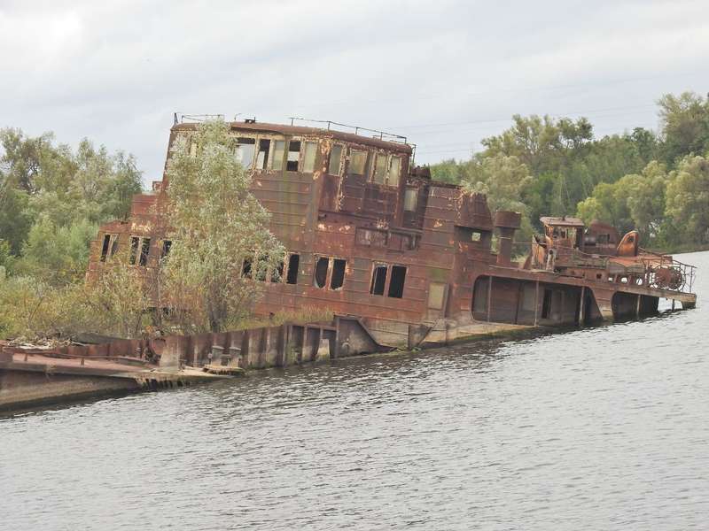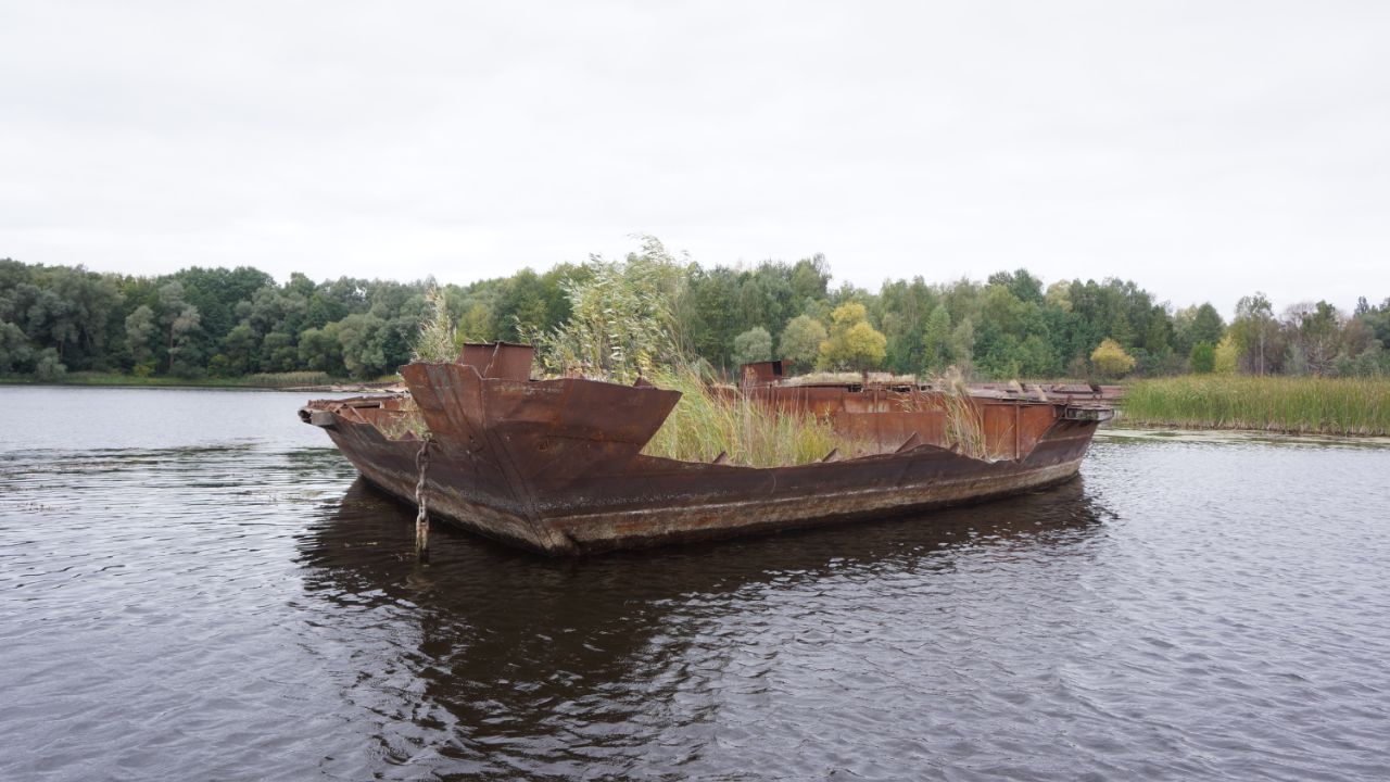 Природа бере своє, кораблі та баржі іржаіють та потроху тонуть у чорнобильському затоні.