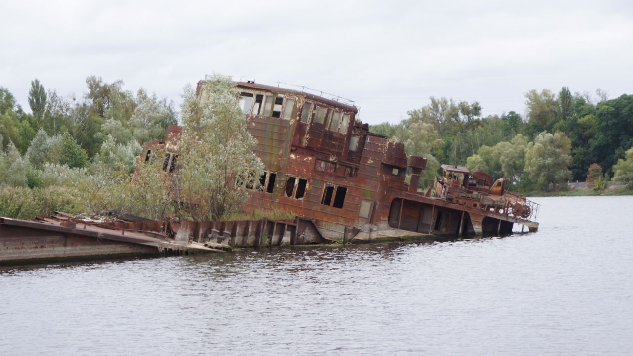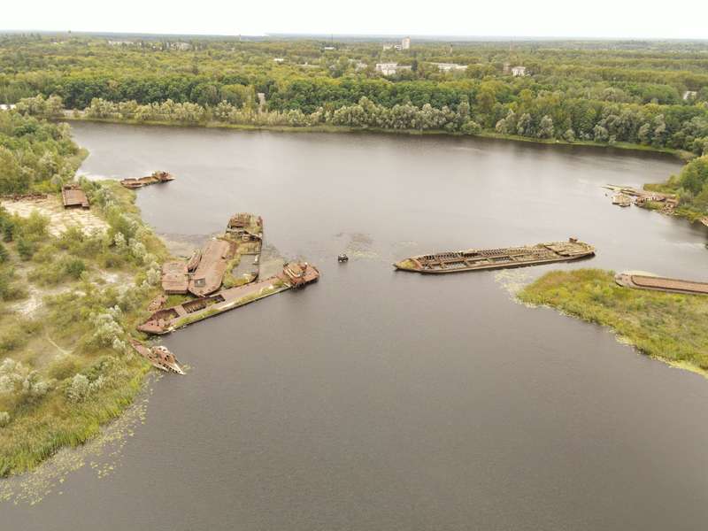 Як сьогодні виглядяє “кладовище” барж і занедбаних кораблів в місті Чорнобиль