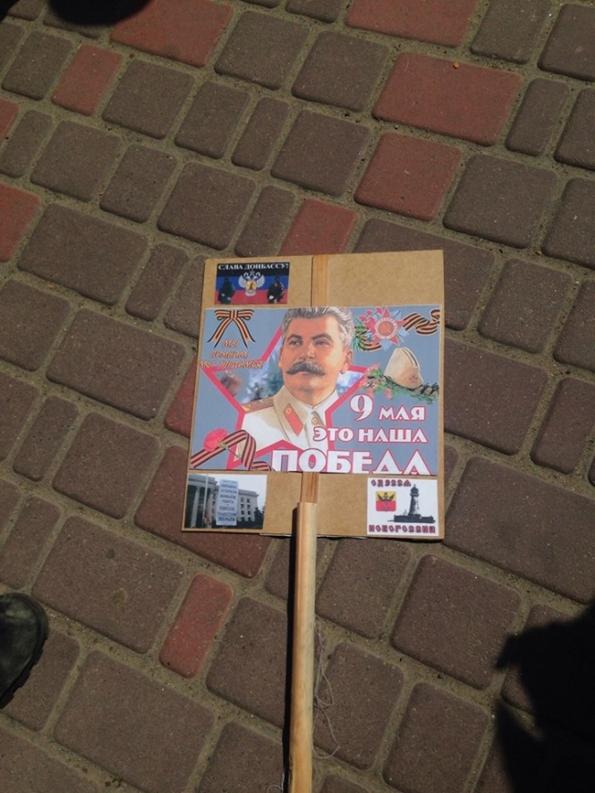 Вчора, у державне свято, у День пам’яті та примирення, ми, патріотично налаштовані одесити, спокійно вийшли з прапорами України, ми вшанували пам’ять як загиблих у 2-й Світовій, так і воїнів АТО і Небесної сотні. Вночі стенд з фотографіями загиблих на Сході України патріотів викрали. А сьогодні, 9 травня, вранці на Алеї Слави почалося мракобісся. Тонни колорадській символіки, Дамбас, слава апалченію, Новоросія, нізабудім-ніпрастім.