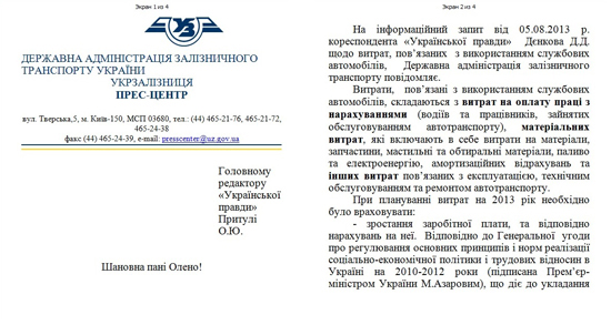 Відповідно до фінансового плану УЗ на 2013 рік витрати залізниць на автопарк порівняно з 2012 роком зросли на 13,3% до 67,2 млн грн. При цьому фонд оплати праці порівняно з планом-2012 збільшився лише на 0,8%. Керівництво УЗ пояснює подорожчання обслуговування автопарку значним ступенем зносу.