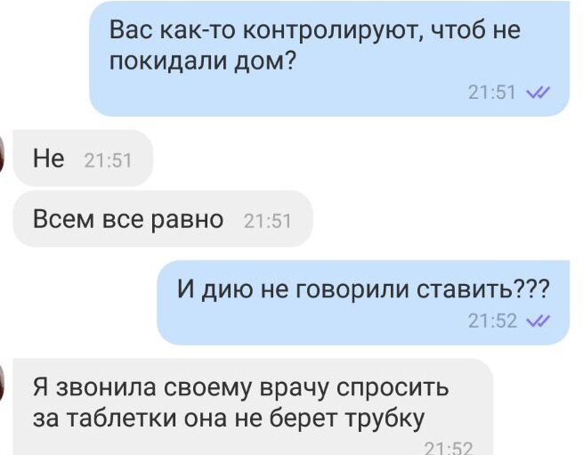 «Я звонила своему врачу спросить за таблетки, она не берет трубку. В больницу идти нельзя. Так что лечусь сама», - добавила она.