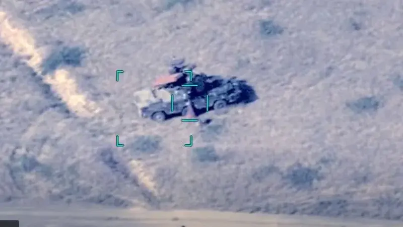 На этом кадре, сделанном азербайджанским беспилотником, видна зенитная установка «Оса», по которой будет нанесен удар