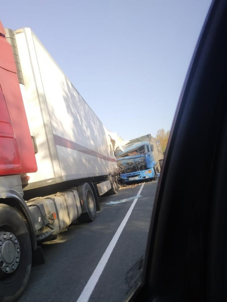 Очевидцы публикуют фото с места аварии и пишут, что в ходе ДТП перевернулся на обгоне автобус Донецк-Москва. По сообщениям людей, автобус столкнулся с фурой, все живы.