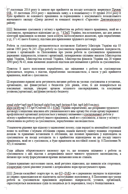 Теги: ЧиновникиУвольнениеВзяткаИнновационно-методический центрМоральный ущербДолжностьУкраинский институт развития образованияКосенчук ОльгаСуд