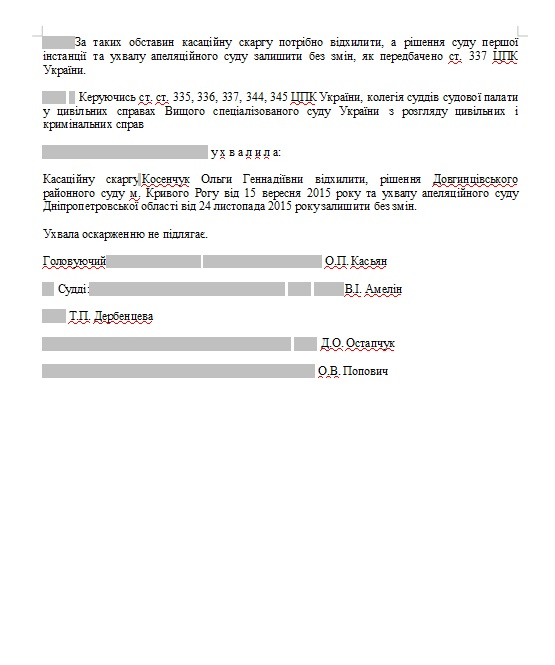 Об этом стало известно из решения Коллегии судей судебной палаты по гражданским делам Высшего специализированного суда Украины по рассмотрению гражданских и уголовных дел от 25 мая 2016 года.