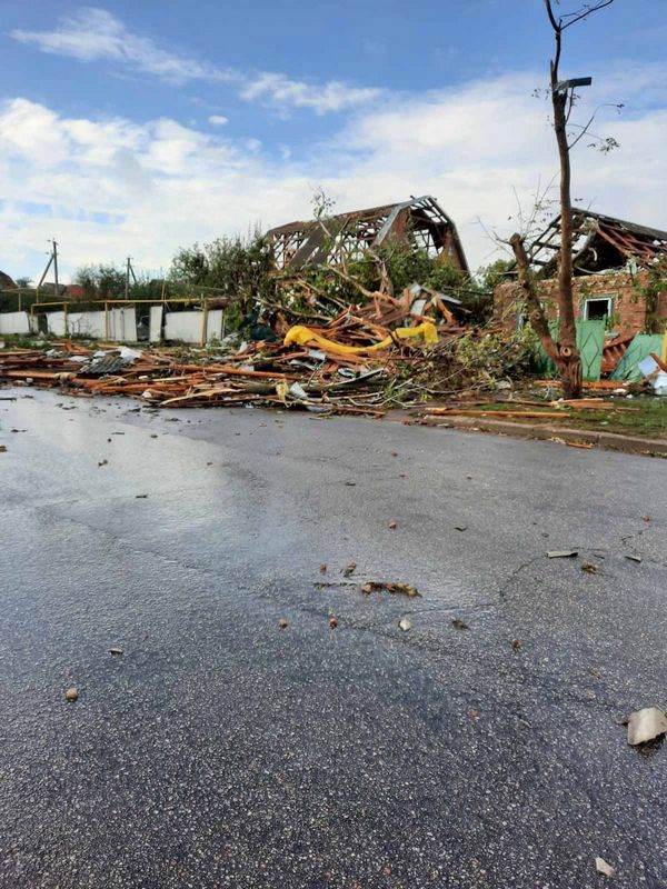 Буквально за 5 минут шквальный ветер снес крыши домов, сорвал внешние конструкции на зданиях, разрушил стены в домах, повалил деревья. Повреждены линии электропередач и газопровод.