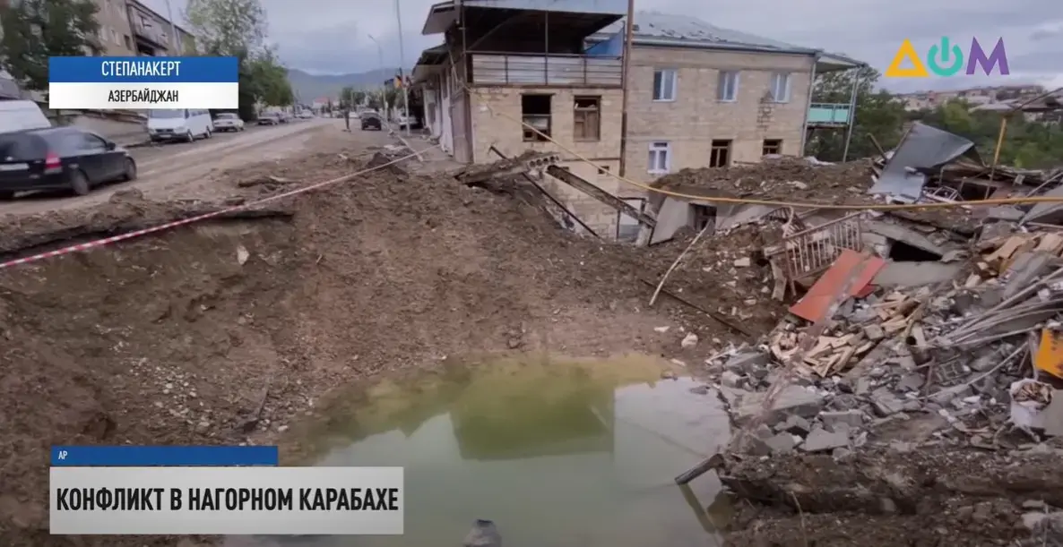 Однако в репортаже о Беларуси пропагандисты показали разрушенные здания и улицы в городе Степанакерт в Нагорном Карабахе, где продолжается вооруженный конфликт между Арменией и Азербайджаном.