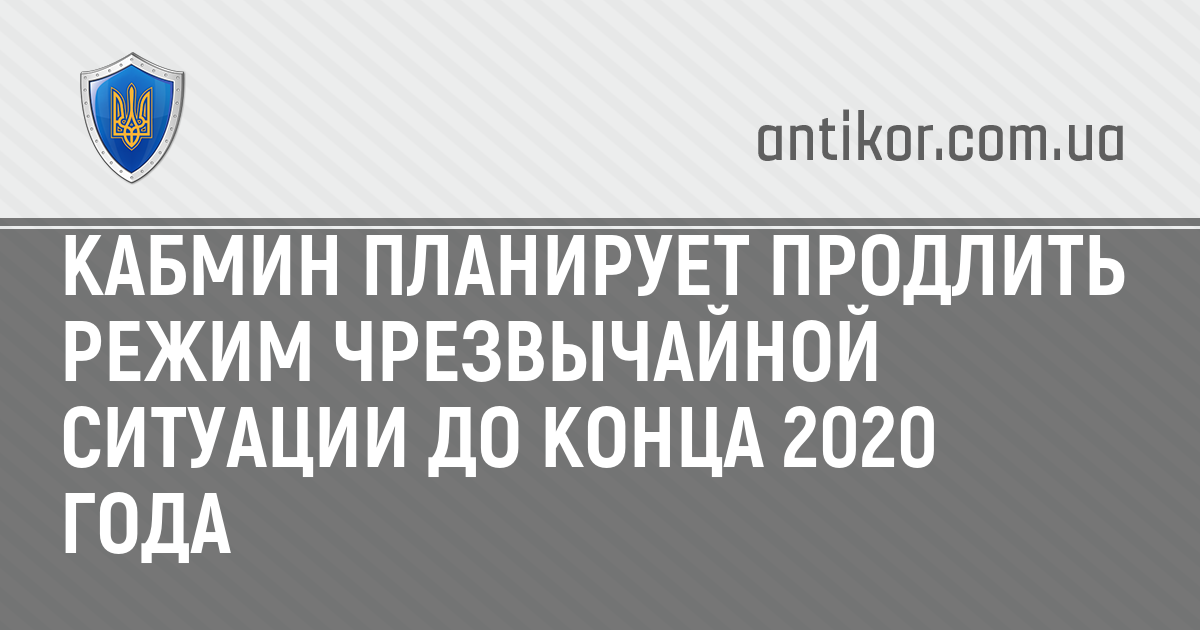 Кабинет министров планирует продлить режим чрезвычайной ситуации в Украине до 31 декабря 2020 года. Режим был установлен в марте 2020 года из-за эпидемии COVID-19.