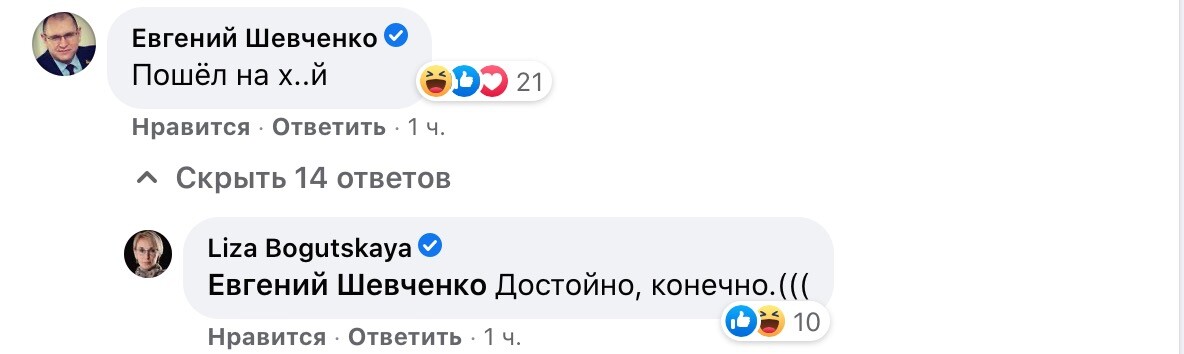 Шевченко отреагировал на пост Безгина коротким комментарием: “Пошел на х..й”.
