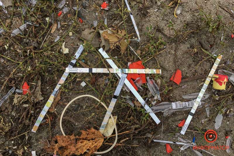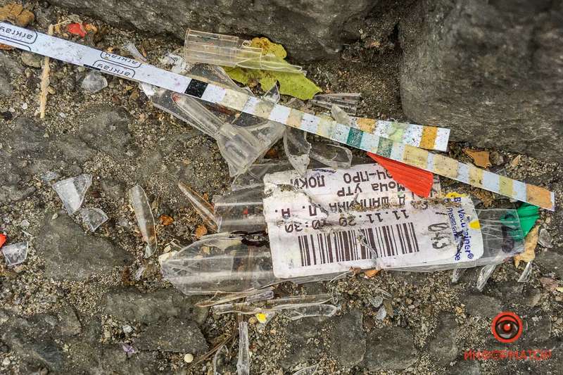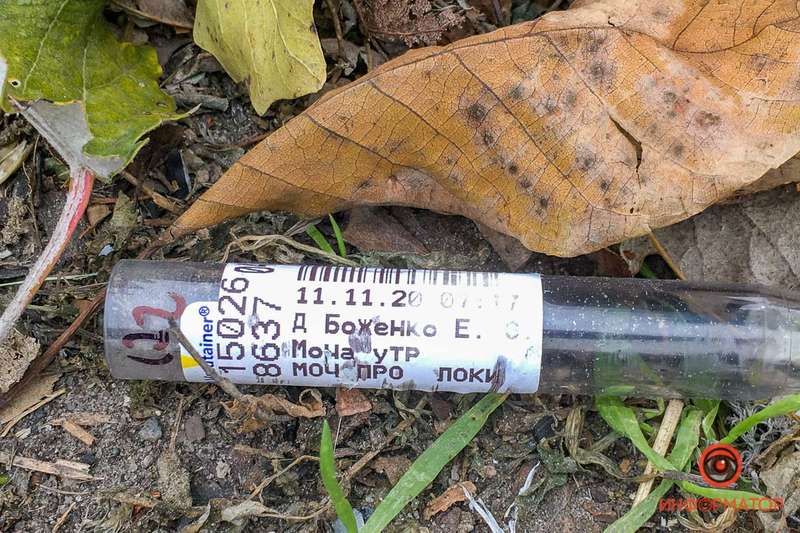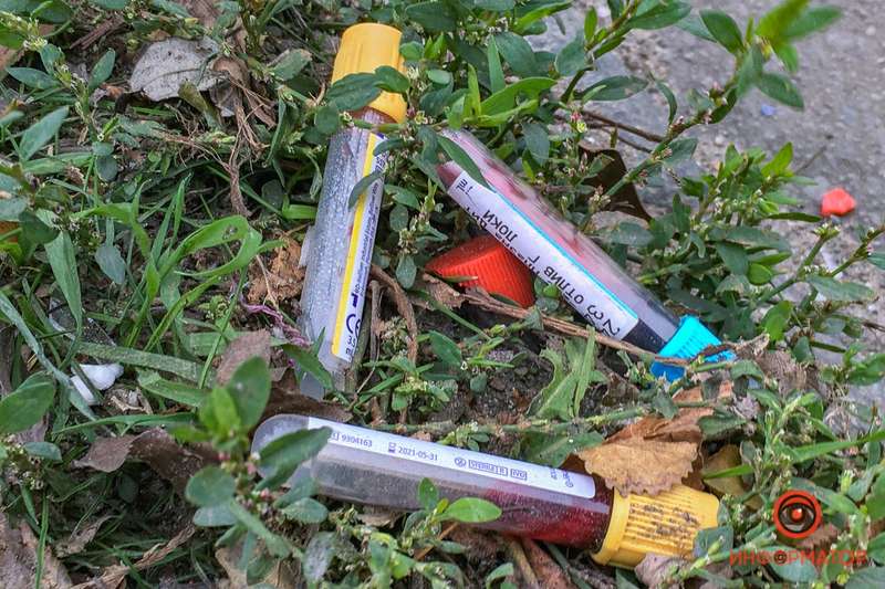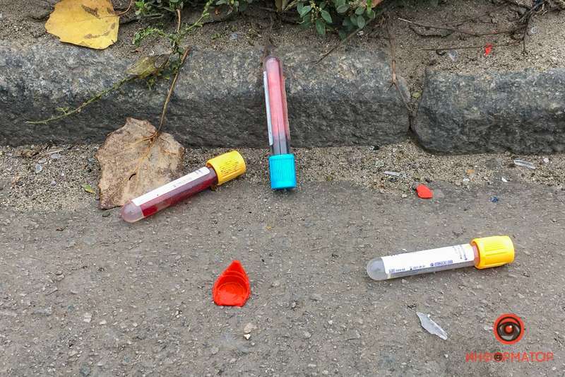 В Днепре на проезжей части валяются пробирки с анализами, подписанные фамилиями пациентов