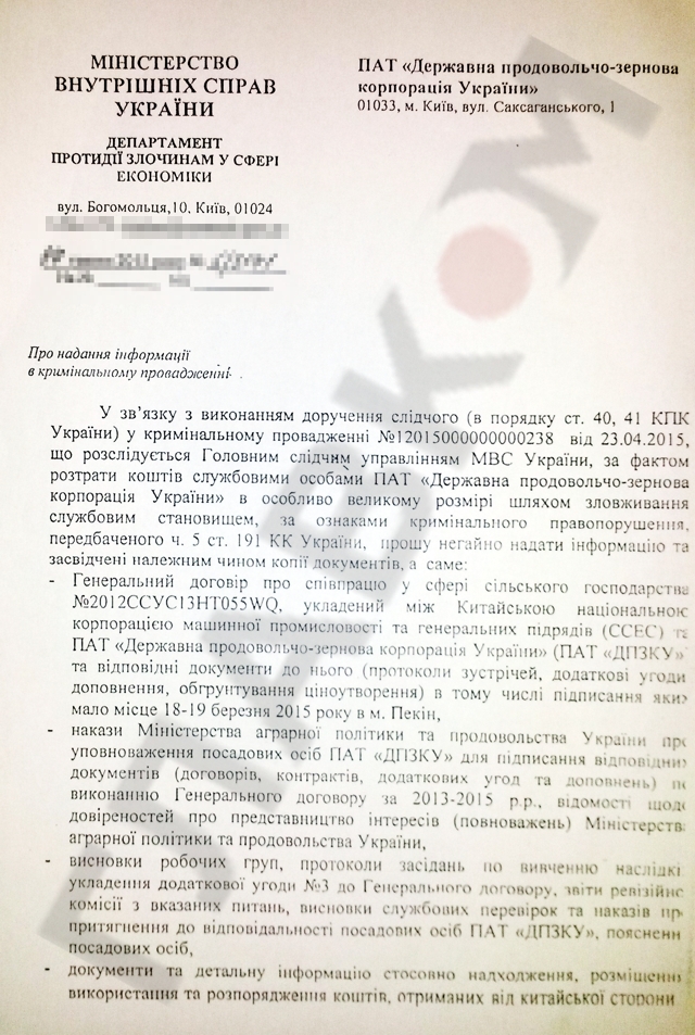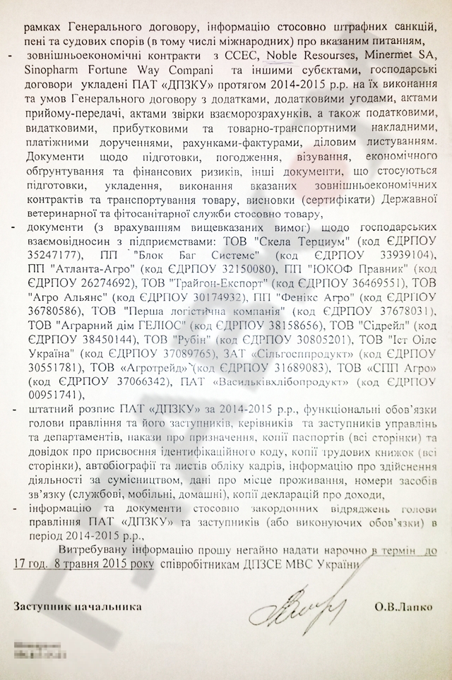 Но замять скандал такими письмами уже вряд ли удастся. Как выяснил «Главком» Noble Resources, как и упомянутыми Minermet SA, Sinopharm Fortune Way Compani, уже заинтересовались правоохранительные органы. В распоряжении редакции есть запрос Министерства внутренних дел в ГПЗКУ от 7 мая 2015 года. Правоохранители в связи с исполнением поручения следователя в уголовном производстве №12015000000000238 от 23.04.2015 требуют немедленно предоставить следующую информацию.