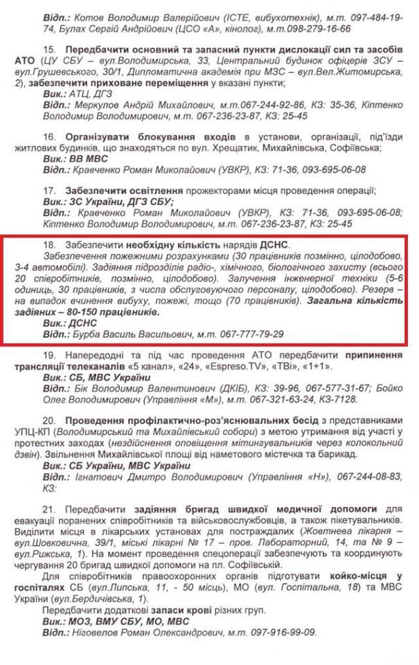 Витяг з плану “Бумеранг” по розгону акції протесту на Майдані Незалежності в лютому 2014 року