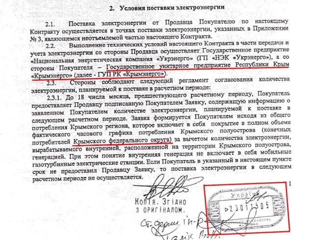Більш того, коли наприкінці 2014 року директор «Укрінтеренерго» Володимир Зіневич відмовився підписувати з окупантами договір на поставку електроенергії, 4 грудня 2014 року за вказівкою президента Порошенка слідчий Генеральної прокуратури України вдягнув на нього кайданки. Зіневичу була висунута підозра в тому, що він уклав контракт з компанією «Steel Mont Trading Ltd» (Великобританія) про придбання вугілля в Південно-Африканської Республіки, «яке за окремими якісними показниками було заздалегідь непридатне для використання». Директор «Укрінтеренерго» був моментально відсторонений від посади, а переляканий заступник підписав угоду на постачання в Крим російської електроенергії, яку підприємство «Укрінтеренерго» спеціально стало для цього закупляти через російського олігарха Григоришина.