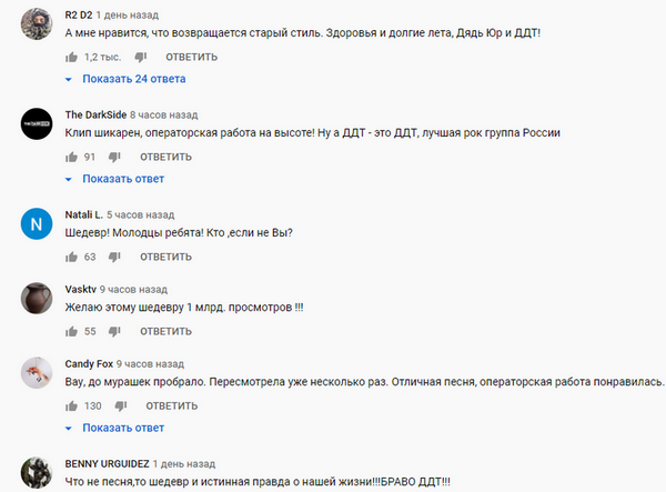 «Спасибо „ДДТ“ за новую песню, за отсутствие фальши, за то, что так точно передали правду жизни!», — написала певица в Instagram.