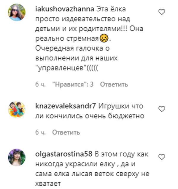 Жители возмущены таким отношением городских властей. Они назвали елку издевательством над детьми и их родителями.