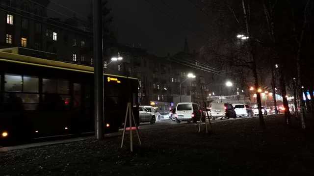Жители города сообщают, что возле Национального цирка Украины в Киеве остановились два трамвая. Из-за этого образовалась пробка.