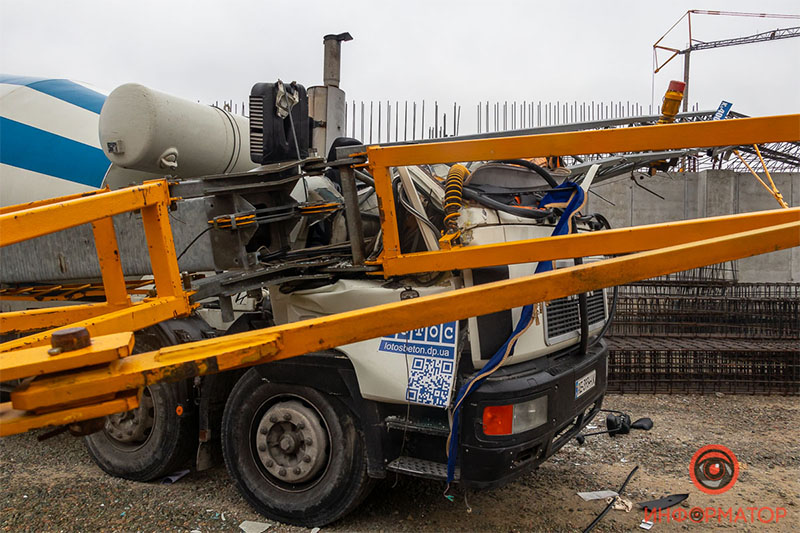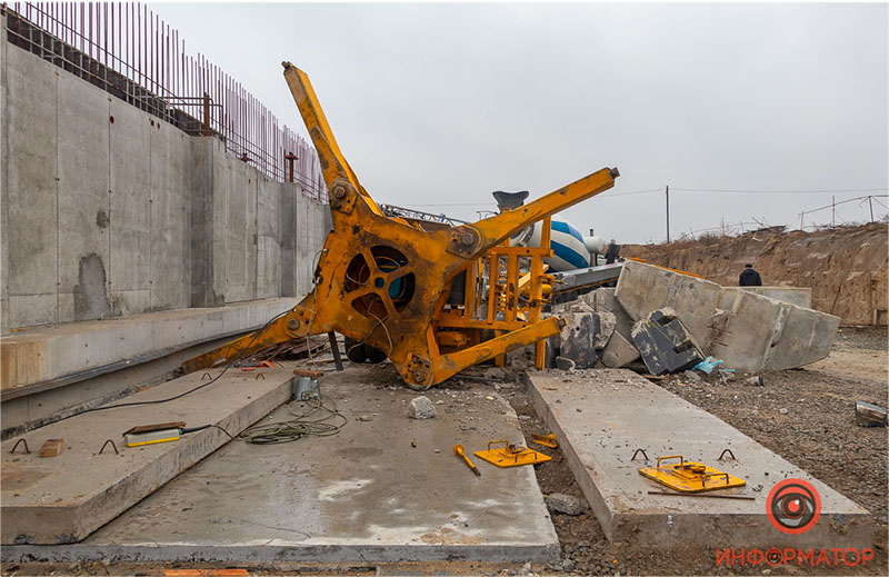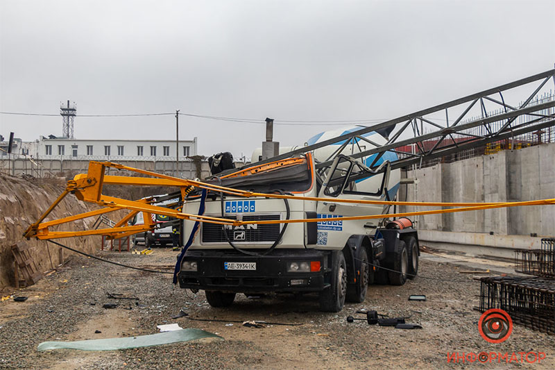 В Днепре, где ранее в заброшенном здании мужчину убила бетонная плита, произошло новое ЧП. На территории строительной площадки в районе улицы Березинской строительный кран упал на бетономешалку MAN.