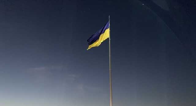Самый большой государственный флаг Украины над Киевом меняют на его зимнюю версию