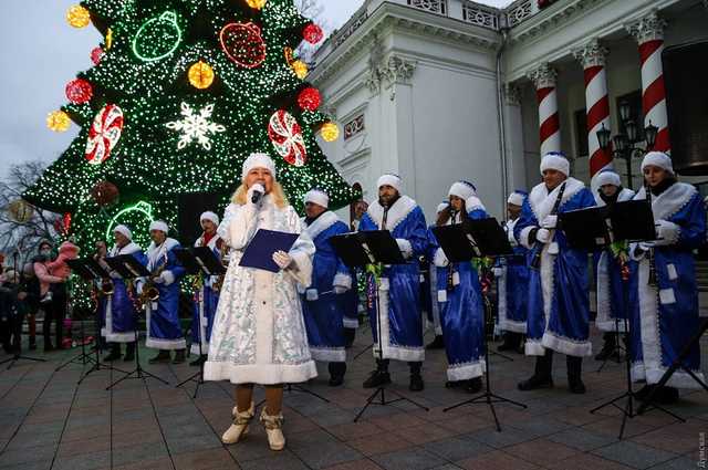 В Одессе во время открытия новогодней елки возле городской мэрии на Думской площади включили российский шансон.