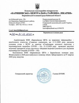 З такими запитаннями журналісти звернулися до голови нещодавно створеної ОТГ «Баришівська селищна рада» (ОТГ є засновницею лікарні) Олександра Вареніченка. Запитання були переадресовані генеральному директору Баришівської лікарні Галині Буняк. Проте вона обмежилася відпискою про те, що лікарня лише в листопаді підписала договір з НСЗУ про лікування «ковідних» хворих, а закупівлю медпрепаратів здійснила лише 21 грудня. Тобто керівниця відверто вказує, що у лікарні, яка була визначена як «коронавірусна», не було грошей на закупівлю ліків. Отже, пацієнти повинні самі купувати ліки. Водночас Галина Буняк повідомила «Главкому», що в 2020 році селищна рада в повному обсязі фінансує лікарню: «Заборгованість за четвертий квартал 2020 року відсутня».