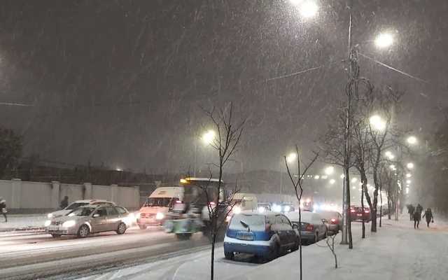 В Киеве вечером в четверг, 14 января из-за снегопада образовались большие пробки.