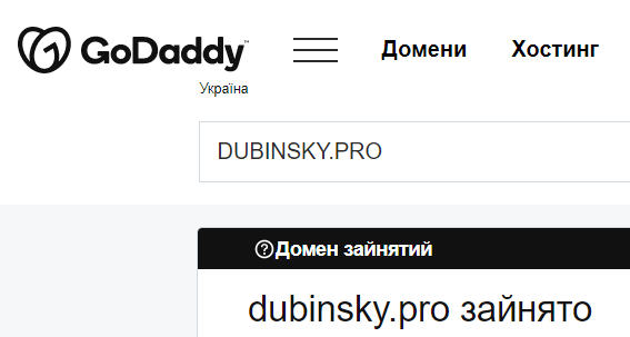При этом статус доменного имени пока - "занято". То есть у Дубинского его еще не отобрали.